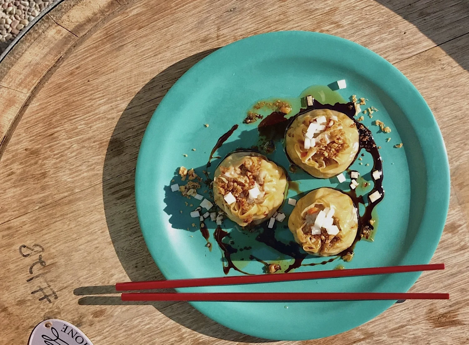 ขนมจีบ THAI STYLE SHU MAI, ground pork, gulf shrimp, jicama, caramel soy sauce, chili oil, white pepper $10